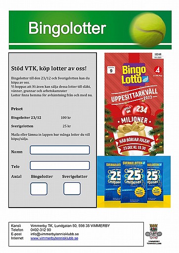 Stöd VTK genom att köpa era lotter till bingolottos uppesittarkväll 23 december av oss.