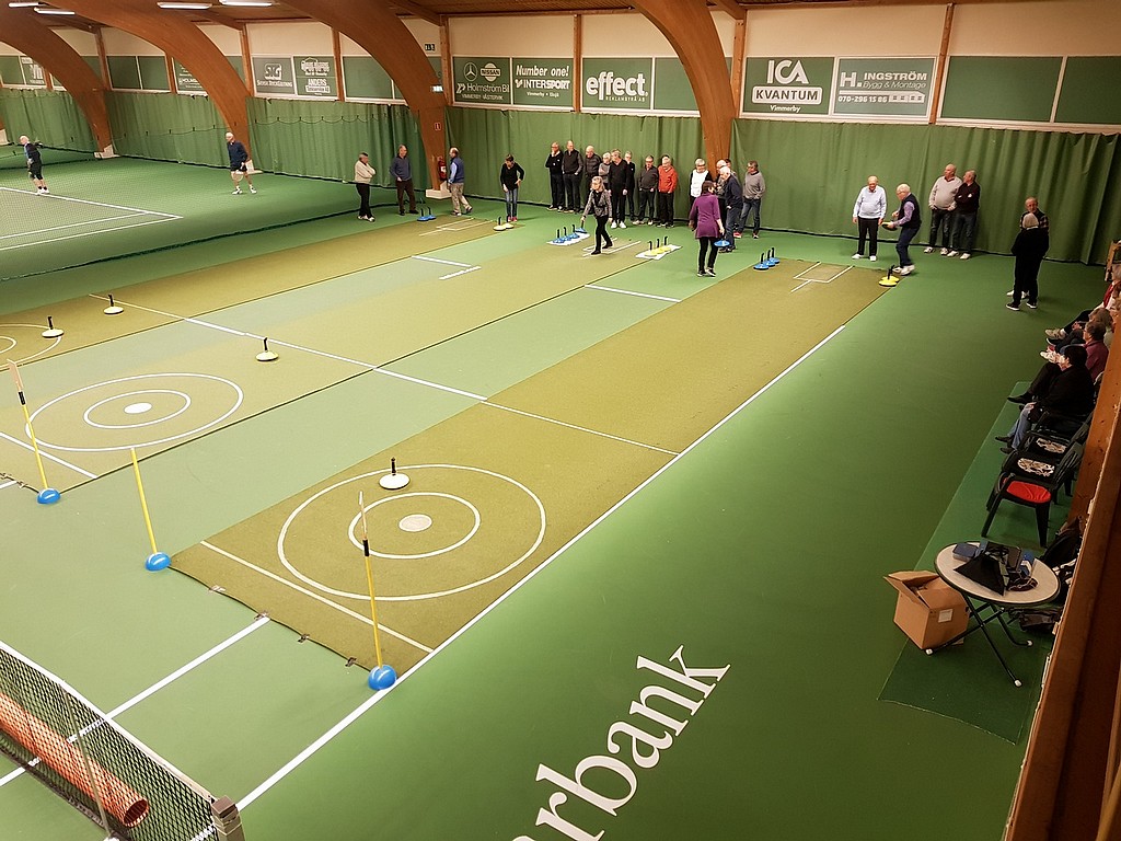 Hela 30 talet pensionerer hade hittat till tennishallen för att prova på mattcurling.