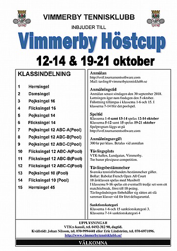 Det går nu att anmäla sig till Vimmerby Höstcup som spelas 12-14 och 19-21 oktober.