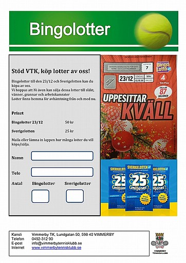 Stöd VTK genom att köpa era lotter till bingolottos uppesittarkväll 23 december av oss.