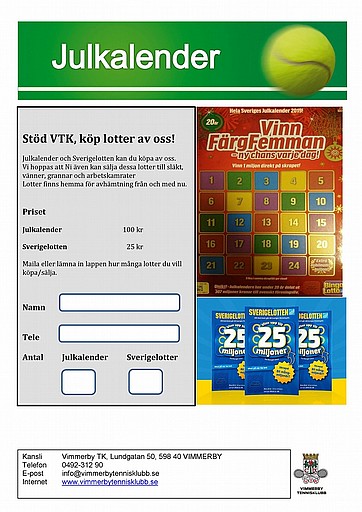 Julkalender och Sverigelotten kan du köpa av oss.