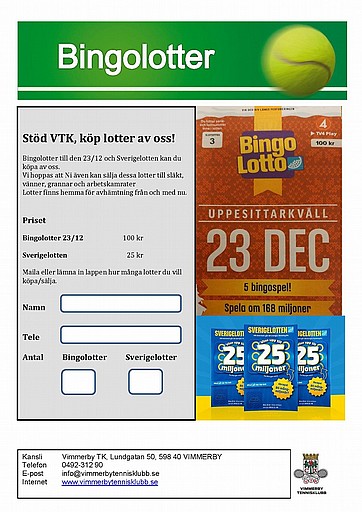 Stöd VTK genom att köpa era lotter till bingolottos uppesittarkväll 23 december av oss.